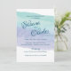 This blue and purple watercolor design is perfect for a tropical destination wedding. The simple and modern design features aqua and purple watercolor with a white background. It's paired with unique text layout for a modern seaside feel.