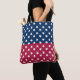 Tote Bag over the shoulder style fashion statement accessory printed with Blue And Red Colour Block With White Stars artwork design by TheFabricSeal at Zazzle.com #ZazzleMade