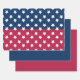 Gift Giving Package Wrapping Paper set of 3 sheets printed with Blue And Red Colour Block With White Stars artwork design by TheFabricSeal at Zazzle.com #ZazzleMade
