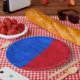 Blue and Red Distressed Two-Tone Pattern Paper Plate