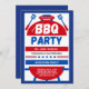 Blue And Red Illustrated 4th of July BBQ Party Invitation