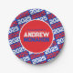 Blue and Red Personalised Graduation Paper Plates - Repeating Background Collection