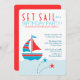 Is your little sailor having a birthday? Set sail with our Blue and Red Sailboat Nautical Birthday invitation. Set the tone for your nautical theme kids birthday party and get everyone excited and ready to have boatloads of fun!