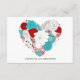 Tiffany Blue and Red Whimsical Floral Heart Wedding Reception Card