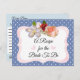Corel, Pink and Burgundy Rose Bouquet on a Blu and White polka Dotted Wedding Recipe card for the Bride to be. Stick these cute recipe cards into the wedding invitation or Save the Dates for your friends and family to fill out and return with the RSVP or at the wedding.