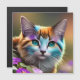 blue and rust calico cat and flowers