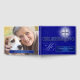 A celebration of life guest book for the person of faith in blue and silver with a Christian cross for a religious feel. The deceased photo on the back with the dates and name.