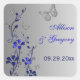 This square royal blue and silver grey floral wedding favour sticker or envelope seal has butterflies and flowers on it that matches the wedding invitation shown below. If you require any changes, or want any other matching items, please email niteowlstudio@gmail.com.
