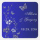 This square royal blue and silver grey floral wedding favour sticker or envelope seal has butterflies and flowers on it that matches the wedding invitation shown below. If you require any changes, or want any other matching items, please email niteowlstudio@gmail.com.