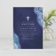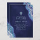 Celebrate the sacred occasion of a baptism with this stunning blue and silver glitter wave invitation. Featuring a shimmering wave design with a delicate cross, this invitation is perfect for inviting friends and family to join in this special event. The elegant colours and artistic design add a touch of grace and beauty, making it ideal for such a meaningful celebration. Customise the details to create a unique and memorable invitation for your child's baptism.