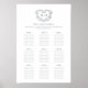 Prussian blue and silver heart wreath outline drawing art monogram seating table plan. Edit this wedding seating table chart with your own seating arrangements and guests' names. An original modern decorative silver effect heart graphic art by Sarah Trett for www.mylittleedenweddings.com exclusively on Zazzle.
