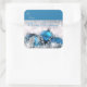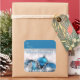 Elegant Christmas and New Year blue and silver gift tag sticker with beautiful glittery Christmas baubles, white sparkling lights, shiny pearls, tinsel and a space for your text.