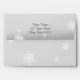 This beautiful design, called Blue and Silver Snowflake Wedding, has a pretty winter inspired design. The background is a beautiful blue. There is a silver border made from snowflakes scattered across the edges. At the top there are two linked hearts. This would be perfect for a winter wedding or if you are looking for a winter wonderland style. This set has invitations, save the date cards, response cards, thank you cards, table number tent cards, envelope seals, wine labels, binders, return address labels and many more day-of wedding stationery pieces, favours, and gifts available. Use the envelope seal stickers for any of your DIY gifts - these are available in both large and small sizes! All elements are printed on our high quality products, they do not include any real gold, jewels, embossing, or other textile elements. All designs are copyright Noteable Expressions, Inc. All rights reserved.