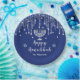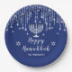 Blue and Silver String Lights Happy Hanukkah Paper Plate