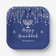 Blue and Silver String Lights Happy Hanukkah Paper Plate