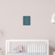 This mid century modern artwork features tan interlocking squares on a medium blue background. This design was inspired by room dividers that were popular in the mid 20th century.