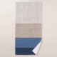 Modern minimalist blue and tan striped crosshatch pattern cute bath towel set