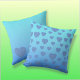 A beautiful Turquoise and Blue Ombre cushion with an array of cornflower blue hearts, the back of the cushion is the same color but with one single heart in one corner. A lovely addition to match or compliment your decor.