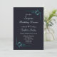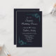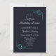 An elegant deep midnight blue surprise 50th birthday dinner invitation featuring turquoise ornate floral leaf embellished corners to frame the invitation details.