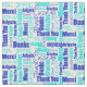Here's a colourful tiled text block consisting of blue and turquoise "Thank You" written in several languages and a variety of typeface styles. Click customise, to select a background colour other than white.
