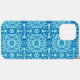 This iPhone case features a tribal ethnic geometric pattern. The colours are blue and turquoise. This design comes from an original tile.