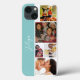 Personalise the phone cover with your favourite photos, easily can fit the photo to the area.5 photo collage iPhone 13 Case in light blue and white background . you can change the background colour from edit design tool.