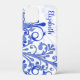 Decorative blue and white abstract floral case. The colours in the design are royal blue, cornflower blue, and white. An elegant and pretty choice to add some girly style to your iPhone. Personalise it with your first name.