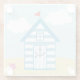 Blue and White Beach Hut Glass Coaster