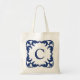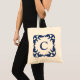 Blue and White Blue Scroll Frame Monogram Tote Bag