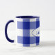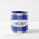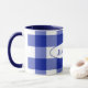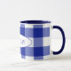 blue and white buffalo plaid with name mug