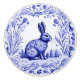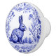 Blue and White Bunny Rabbit Mediterranean Folk Art Ceramic Knob