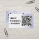 This professional business card features a modern design with a blue and white colour scheme, complemented by a light blue back for a clean, stylish look. On the front, your name and job title are prominently displayed in black text on a white background, framed by subtle blue accents. A QR code is also included, allowing easy access to your online presence, portfolio, or contact details with a quick scan.