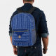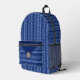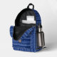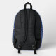 The original collage by ZoeSPEAK on this breezy looking Backpack is a pattern with a mood of the seaside. Done in marine blue and white, the backpack is covered in bands of shapes which look like water droplets in a zigzag pattern. At the top of the design, in the center, there is a textured dark blue triangle with a white edge. A sea shell completes the picture, over the point of the triangle. The shell is a scallop shell in shades of warm beige and light brown. This casual, chic look is great for a cottage at the beach, or anywhere you want a fresh and breezy vibe.