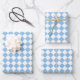 Blue and White Chequered Diamond Pattern Wrapping Paper Sheets