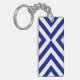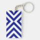 Alternating blue and white chevrons converge in this bold geometric pattern created from scratch.