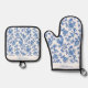 Blue and White Chinoiserie Custom Name Oven Mitt & Pot Holder Set