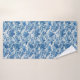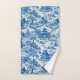 Bathroom towel set with a vintage chinoiserie pattern in classic blue and white.