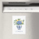 This kitchen fridge magnet features a beautiful blue and white chinoiserie vase with blue and white hydrangea flowers and lemons. Personalise with your choice of name or special text. Fun for personalised gift bags and party favours.