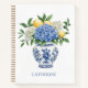 This spiral notebook features beautiful blue and white chinoiserie vases with blue and white hydrangea flowers and lemons. Personalise with your choice of name and special text on each side. Fun for personalised gift bags and party favours.