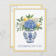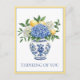 This postcard features a beautiful blue and white chinoiserie vase with blue and white hydrangea flowers and lemons. Personalize with your choice of name or special text.