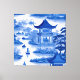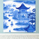 Blue and white chinoiserie with pagodas and boats canvas print