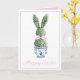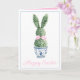 This Easter greeting card features a cute bunny rabbit green topiary with pink bow in a blue and white chinoiserie flowerpot. Personalize the holiday messages on the front and inside with your choice of special text.