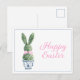 This Easter postcard features a cute bunny rabbit green topiary with pink bow in a blue and white chinoiserie flowerpot. Personalize the holiday message with your choice of special text.