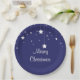 Modern blue and white design with elegant typography. This original design features white stars hanging in a deep blue sky. The text reads Merry Christmas. Let the party supplies double as your decorations with this colourful design.