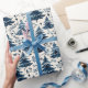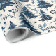 Vibrant patterns of dark blue Christmas trees and delicate white accents create a festive atmosphere, perfect for wrapping holiday gifts and celebrating winter's beauty during the season.