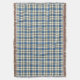 Throw blanket with the family tartan pattern for Clan Hannay. Vintage Scottish plaid pattern in creamy white, bright blue and black with yellow highlights.