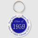 Blue and White Class of 1959 Customisable Keychain or YOUR School COLORS, Year, etc, at no extra charge. You or Designer Linda: 239-949-9090 can DELETE any part of the design and add your own image and text OR, CALL Designer Linda: 239-949-9090 to CHANGE the COLORS or create Text or Photo Templates to Fit YOUR TEXT, IMAGES and or COLORS. We have Thousands of products that I can place any of my designs on for ANY Occasion, Year, Colours, Design or many matching and coordinating products.
