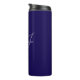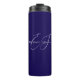 the design shows a customisable name along with a customisable name monogram in classic white calligraphy and typography with navy blue background.
