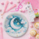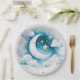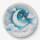 Blue and White Crescent Moon Celestial Boho Modern Paper Plate