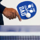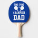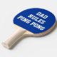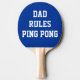 A blue and white ping pong champion paddle with text you can customise. Dad Rules! If your Dad likes to play, treat him to this ping pong paddle today. It's already got his name on it!